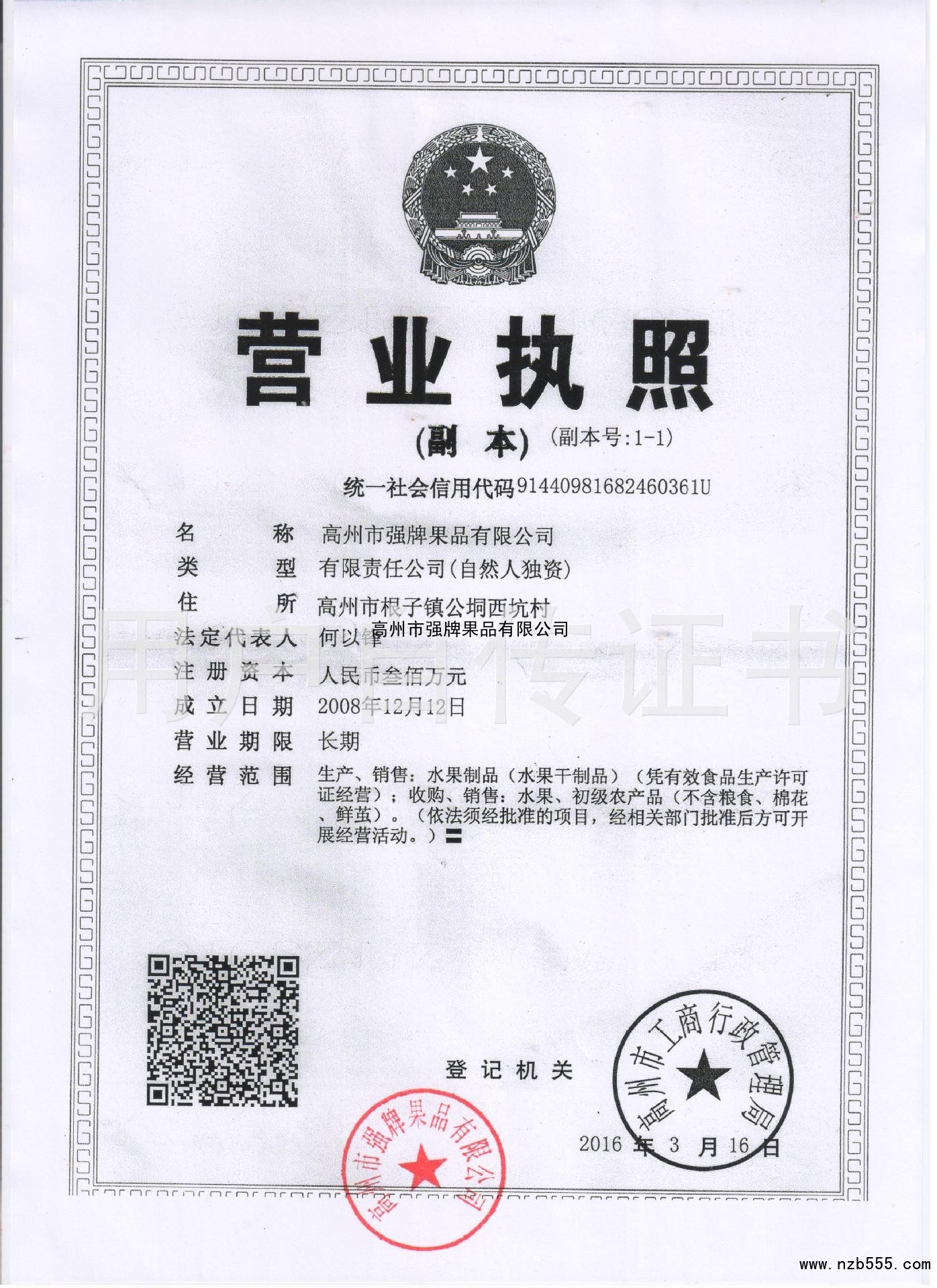 | 發(fā)證機(jī)構(gòu): | 高州市工商行政管理局 | 發(fā)證時(shí)間 : | 2016-03-16 |