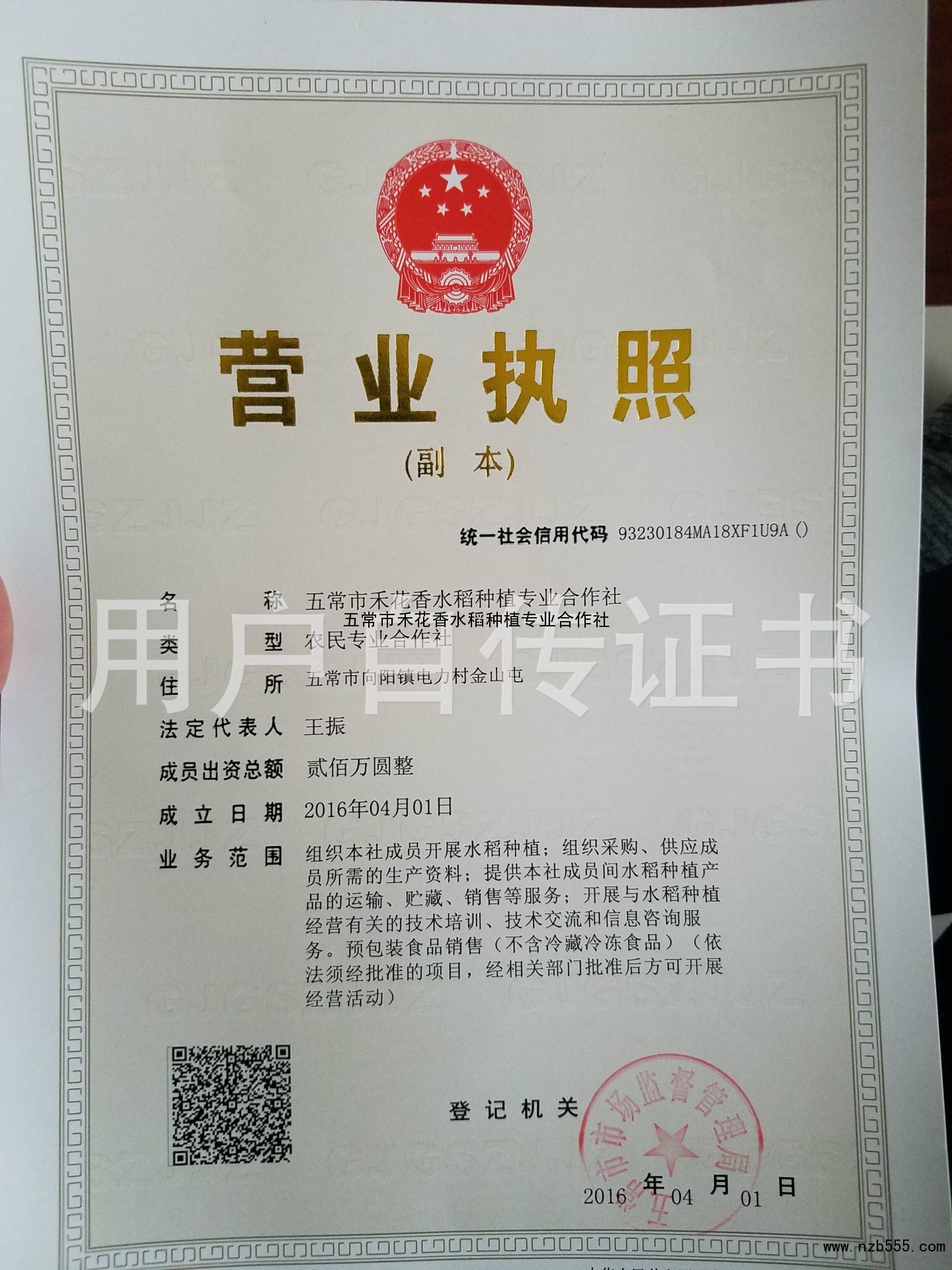 | 發(fā)證機(jī)構(gòu): | 五常市市場監(jiān)督管理局 | 發(fā)證時(shí)間 : | 2016-04-01 |