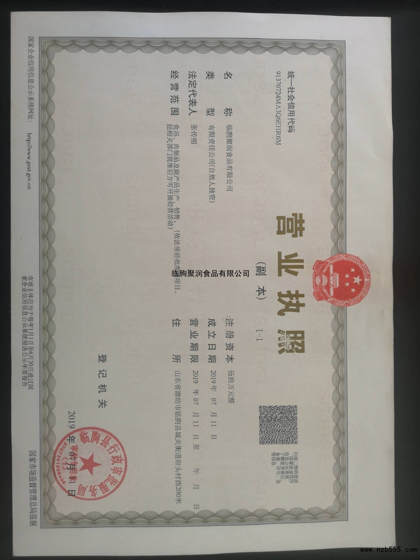 | 發(fā)證機(jī)構(gòu): | 臨朐縣行政審批服務(wù)局 | 發(fā)證時(shí)間 : | 2019-07-11 |