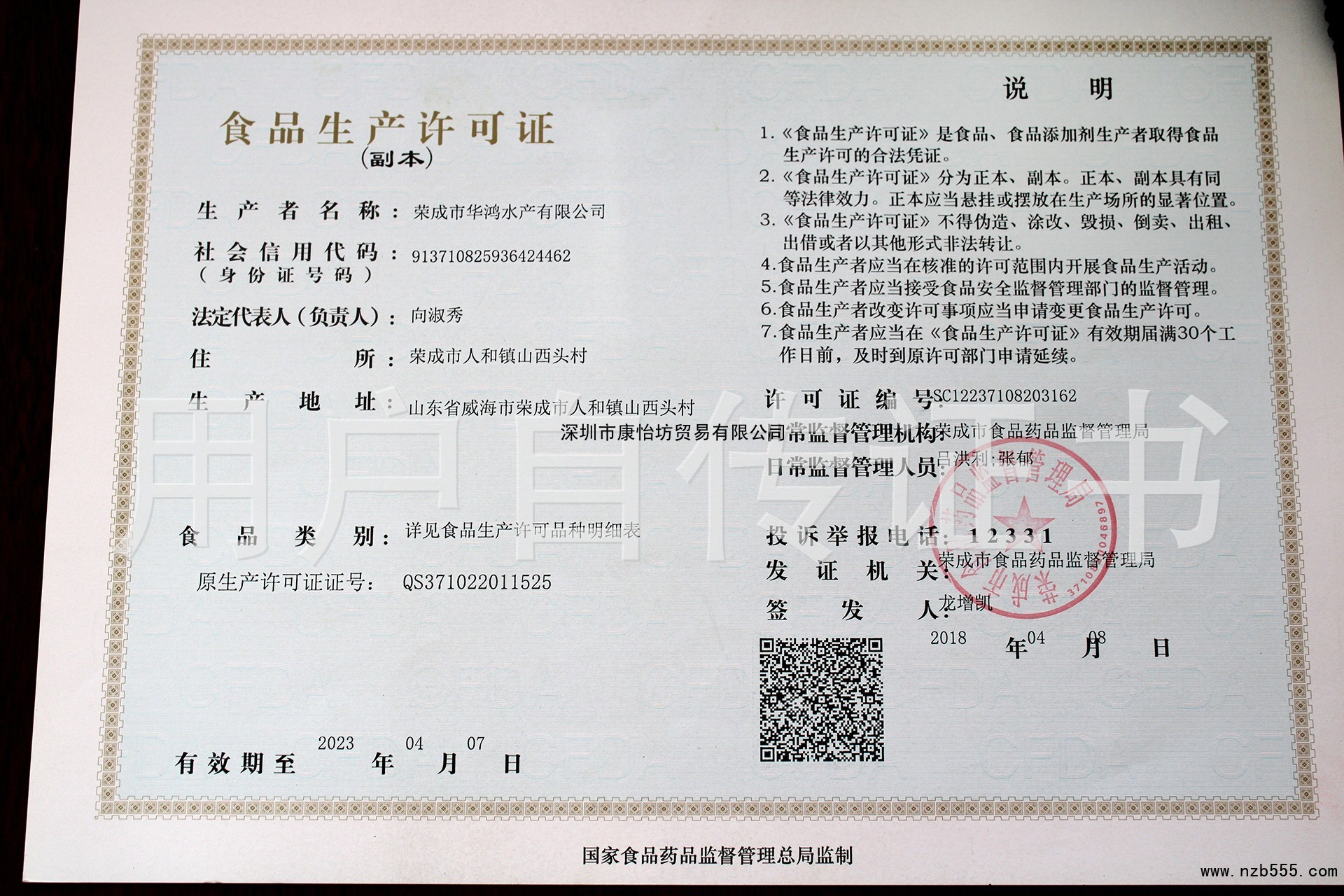 食品生產許可證(除乳制品、嬰幼兒配方乳粉、酒之外的生產許可證)
