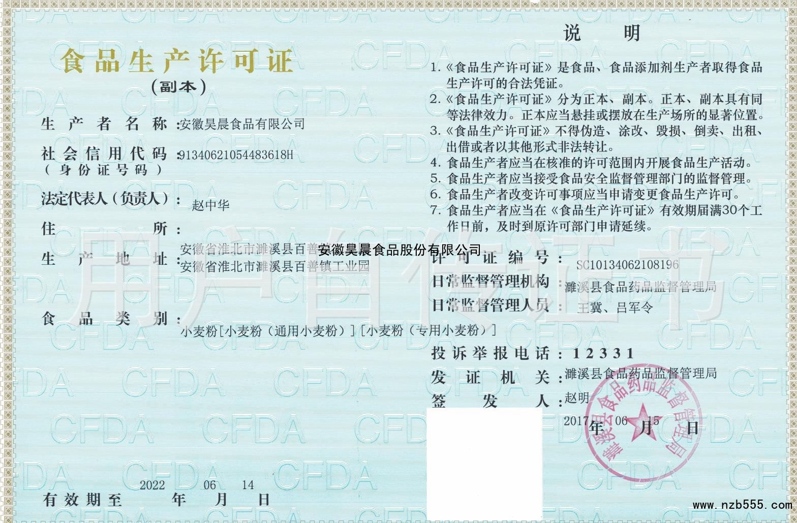 | 發(fā)證機(jī)構(gòu): | 濉溪縣食品藥品監(jiān)督管理局 | 發(fā)證時(shí)間 : | 2017-06-15 |