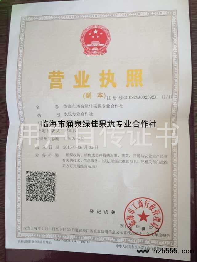臨海市涌泉綠佳果蔬專業合作社