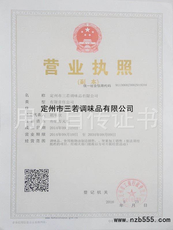 | 發(fā)證機(jī)構(gòu): | 定州市工商行政管理局 | 發(fā)證時(shí)間 : | 2016-05-23 |