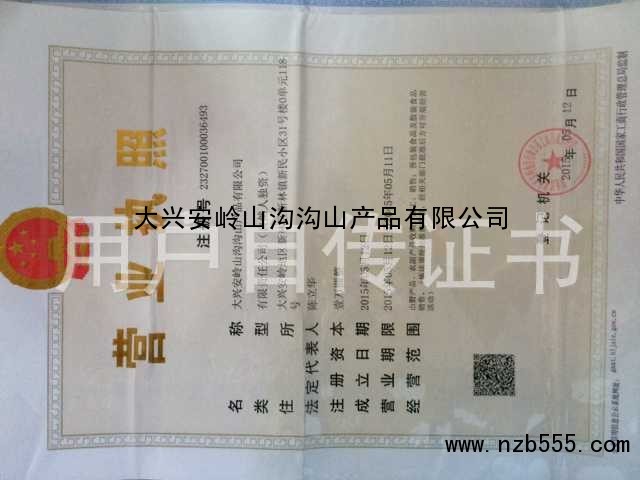 | 發(fā)證機(jī)構(gòu): | 黑龍江省大興安嶺地區(qū)工商行政管理局 | 發(fā)證時間 : | 2015-03-12 |