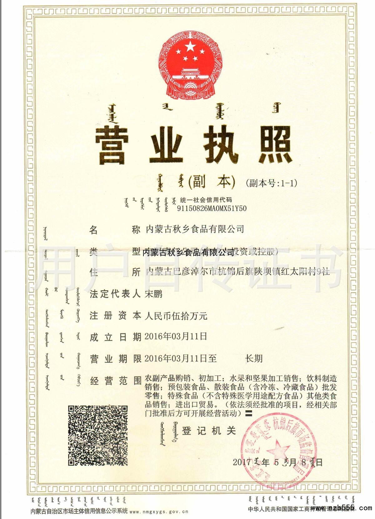 內蒙古秋鄉食品有限公司