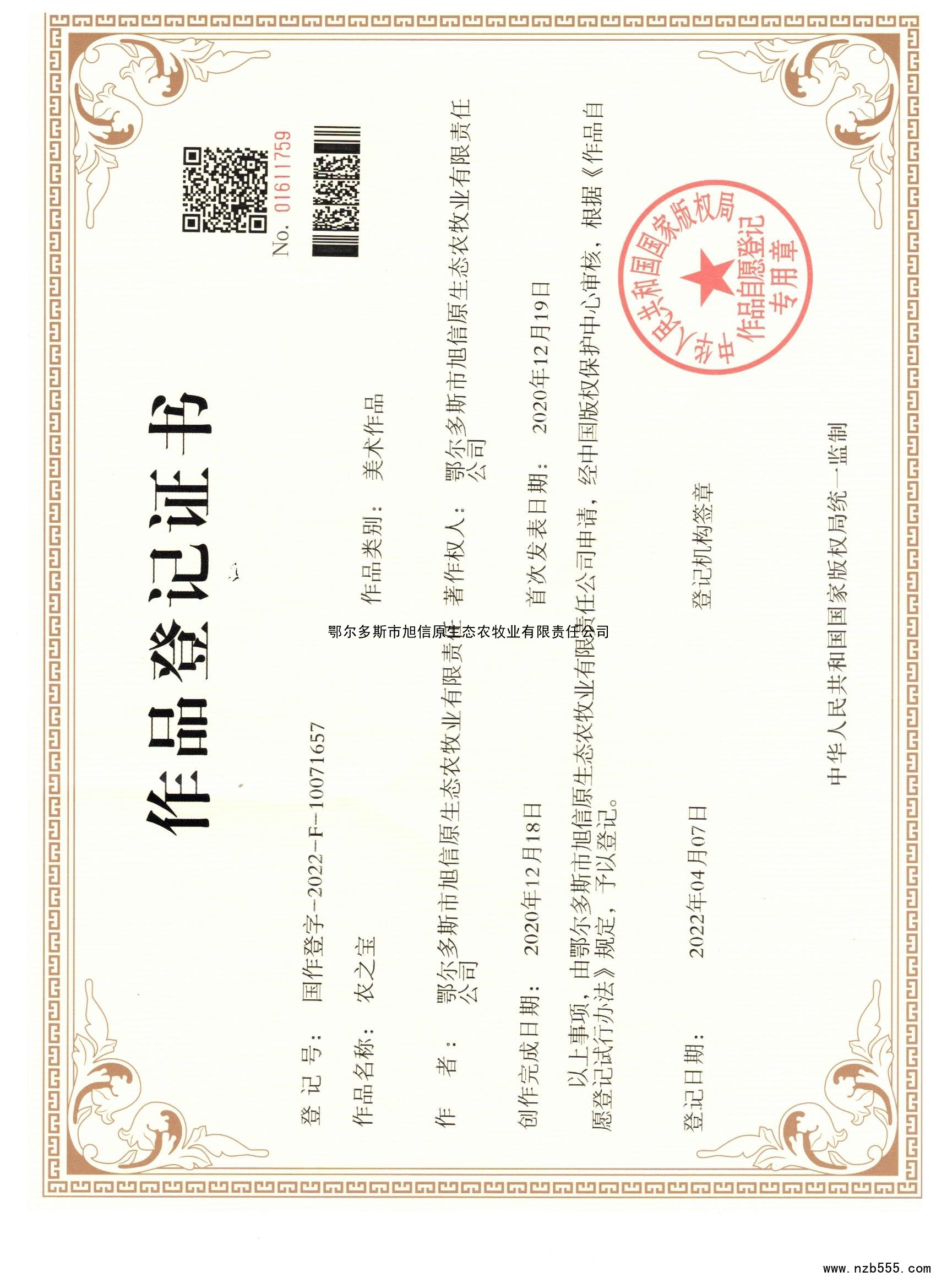 作品登記證書 農(nóng)之寶