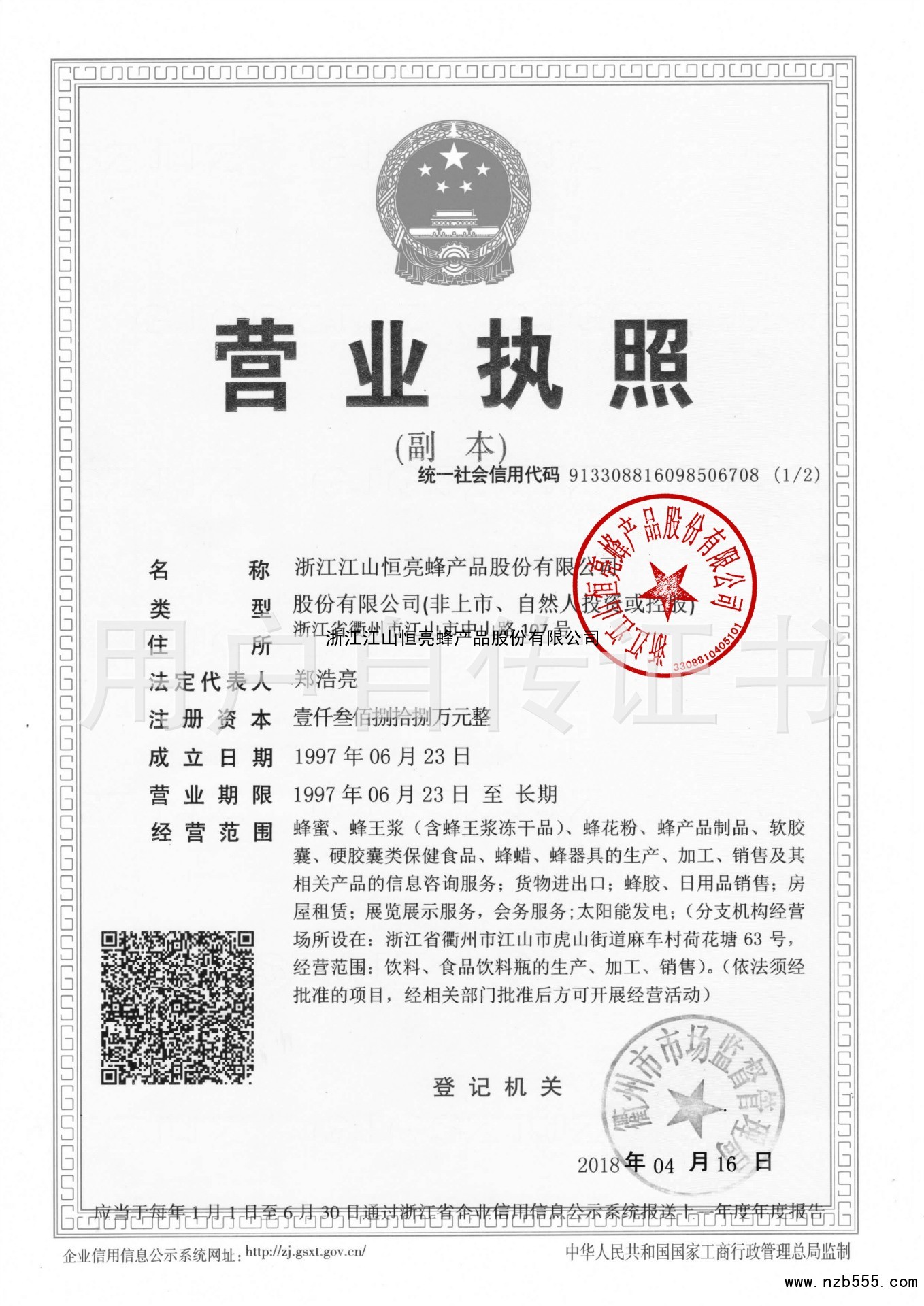 浙江江山恒亮蜂產品股份有限公司