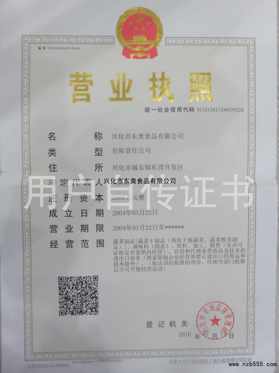 | 發(fā)證機(jī)構(gòu): | 興化市市場監(jiān)督管理局 | 發(fā)證時間 : | 2016-07-14 |