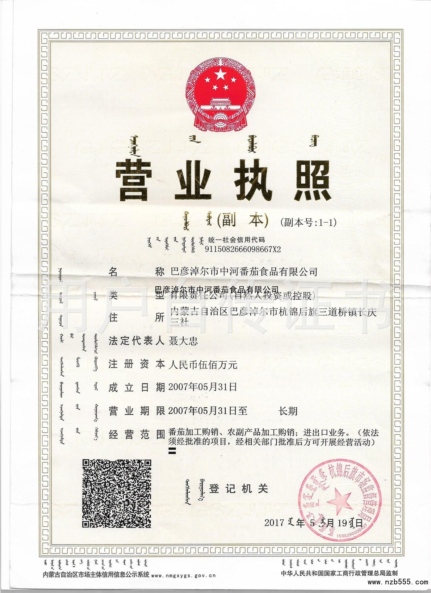 | 發(fā)證機(jī)構(gòu): | 杭錦后旗市市場(chǎng)監(jiān)督管理局 | 發(fā)證時(shí)間 : | 2017-05-19 |