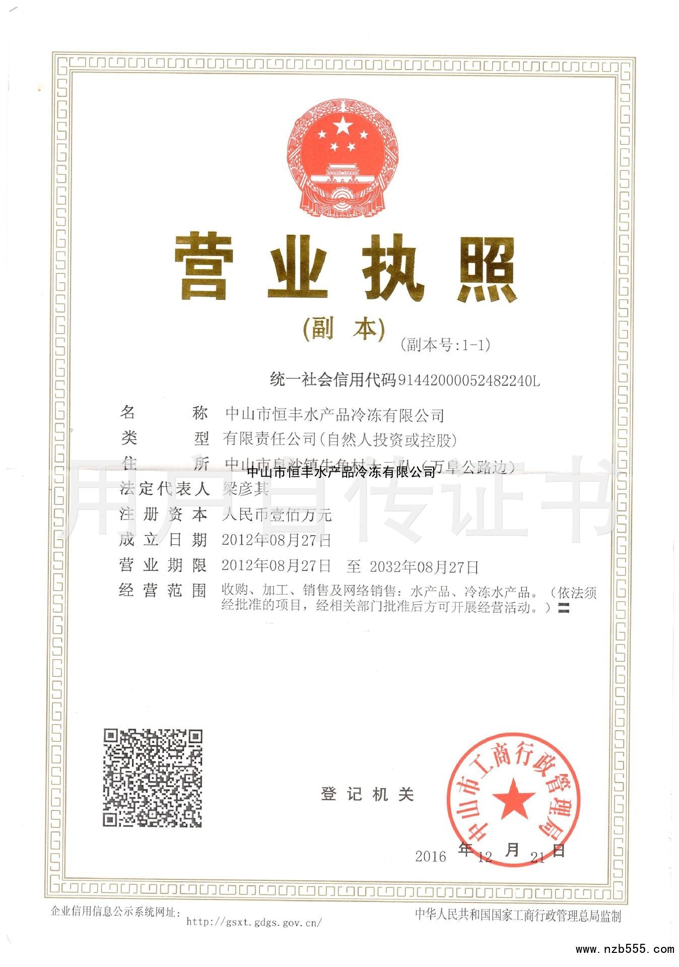 中山市恒豐水產品冷凍有限公司