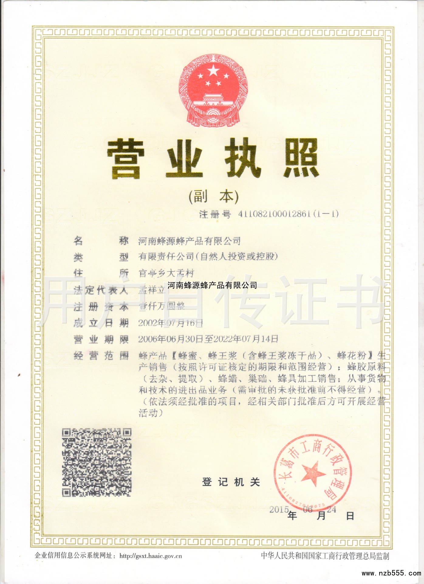 榮譽(yù)資質(zhì) 河南蜂源蜂產(chǎn)品有限公司