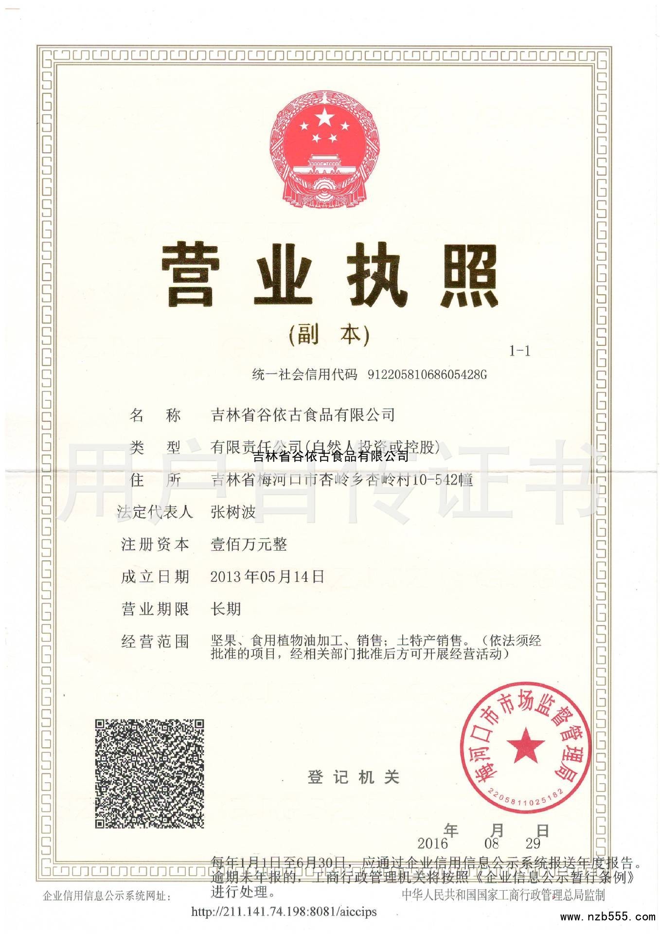 | 發(fā)證機(jī)構(gòu): | 梅河口市市場(chǎng)監(jiān)督管理局 | 發(fā)證時(shí)間 : | 2016-08-29 |