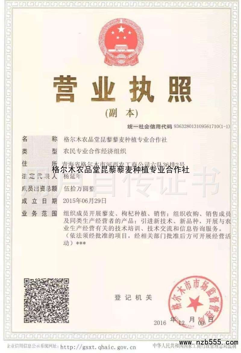 格爾木農品堂昆藜藜麥種植專業合作社