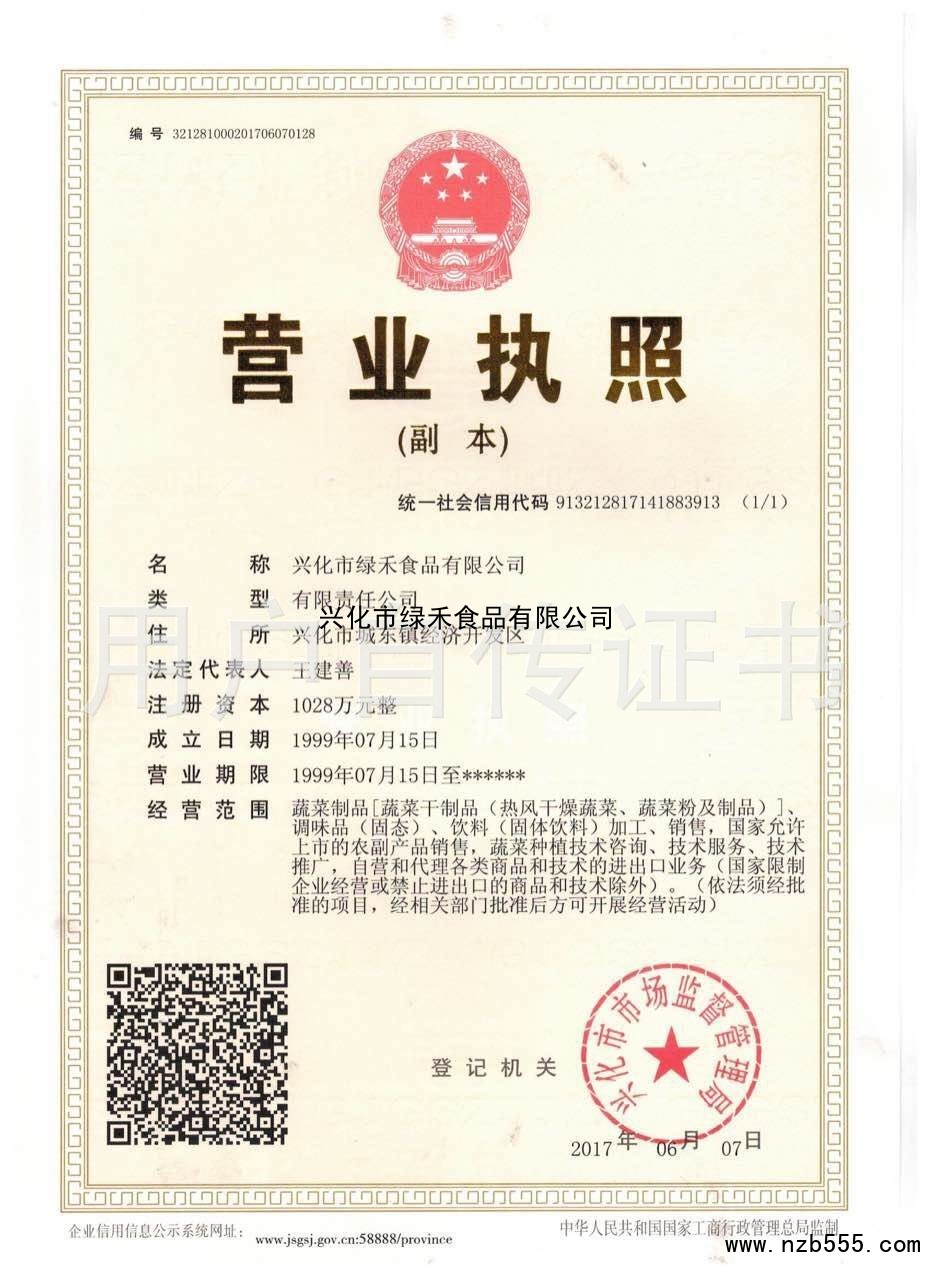 | 發(fā)證機(jī)構(gòu): | 興化市市場監(jiān)督管理局 | 發(fā)證時間 : | 2017-06-07 |