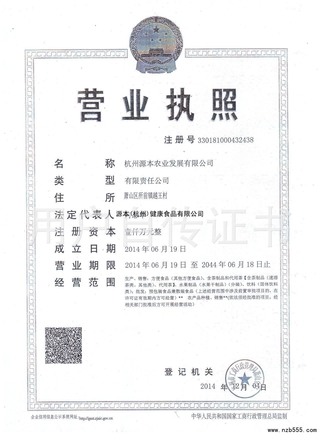 | 發(fā)證機(jī)構(gòu): | 杭州市工商行政管理局蕭山分局 | 發(fā)證時(shí)間 : | 2014-12-04 |