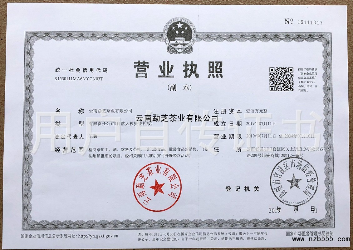 | 發(fā)證機(jī)構(gòu): | 昆明市官渡區(qū)市場(chǎng)監(jiān)督管理局 | 發(fā)證時(shí)間 : | 2019-07-11 |