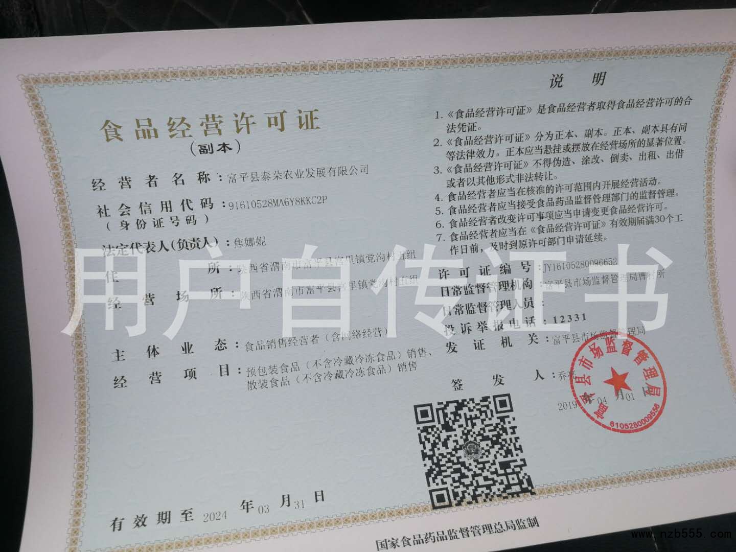 | 發(fā)證機(jī)構(gòu): | 富平縣市場監(jiān)督管理局 | 發(fā)證時間 : | 2019-04-01 |