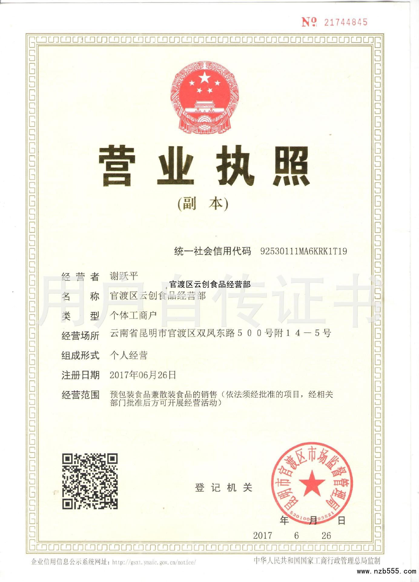 榮譽(yù)資質(zhì) 官渡區(qū)云創(chuàng)食品經(jīng)營部