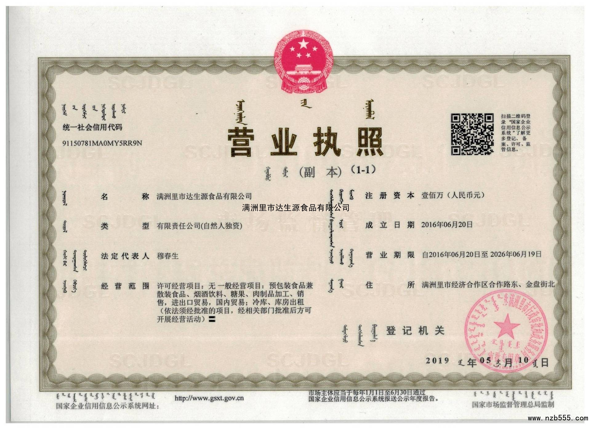 滿洲里市達生源食品有限公司
