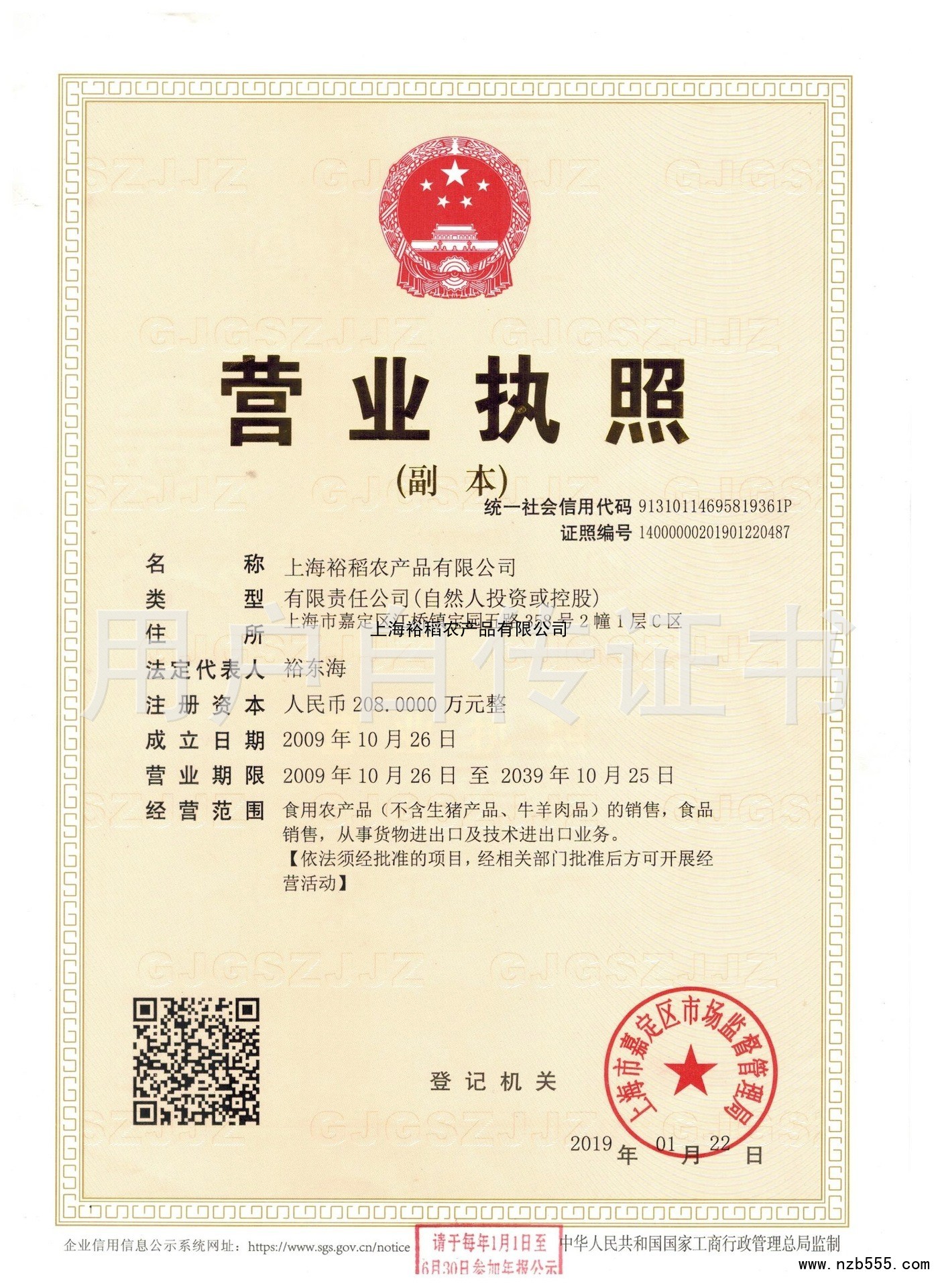 上海裕稻農產品有限公司