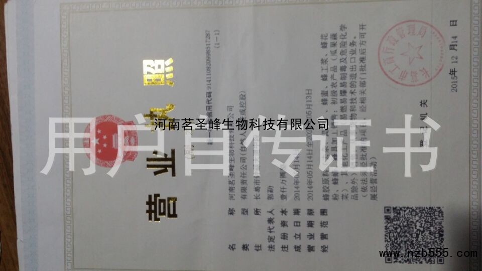 | 發(fā)證機(jī)構(gòu): | 長(zhǎng)葛市工商行政管理局 | 發(fā)證時(shí)間 : | 2015-12-14 |