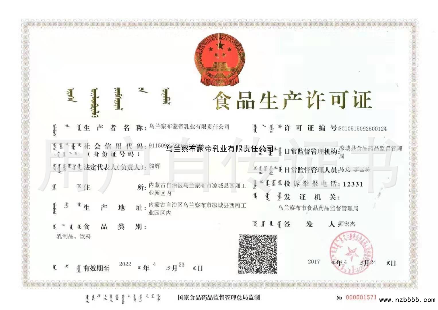 烏蘭察布蒙帝乳業有限責任公司