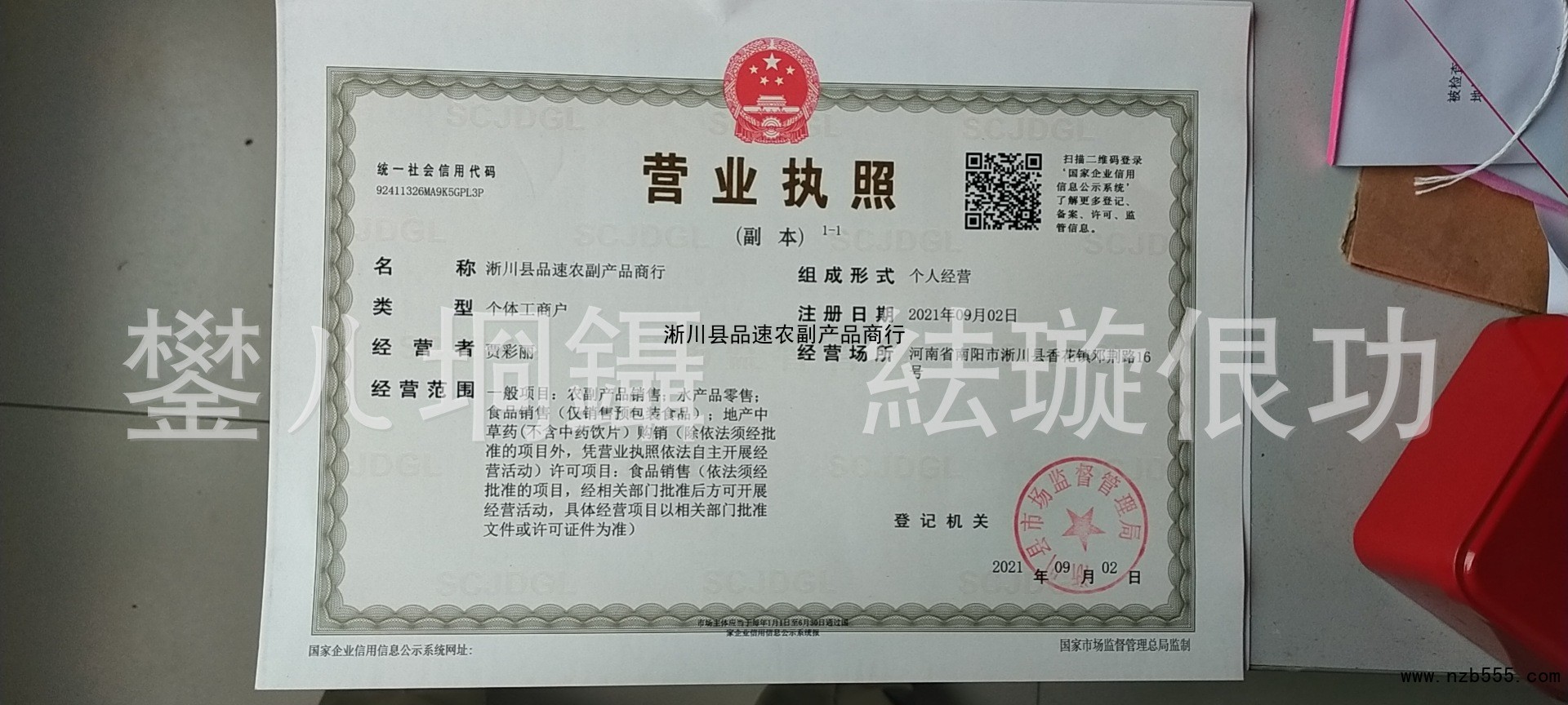 | 發(fā)證機(jī)構(gòu): | 浙川縣市場監(jiān)督管理局 | 發(fā)證時(shí)間 : | 2021-09-02 |
