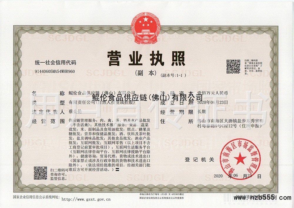 | 發(fā)證機(jī)構(gòu): | 佛山市南海區(qū)市場(chǎng)監(jiān)督管理局 | 發(fā)證時(shí)間 : | 2020-06-23 |