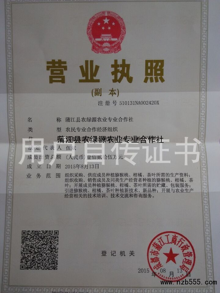 | 發(fā)證機(jī)構(gòu): | 成都市蒲江工商行政管理局 | 發(fā)證時(shí)間 : | 2015-08-13 |