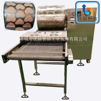 該設備能自動完成面皮的送料、成型、熟制、輸出、降溫等工序,可以與下餡機,油炸機,速凍機,包裝機等組成全自動熟食生產線。適用于面制品、烤鴨餅、春卷皮、咖喱皮、蛋餃皮、荷葉餅的成型。面皮大小與形狀可根據客戶定制。