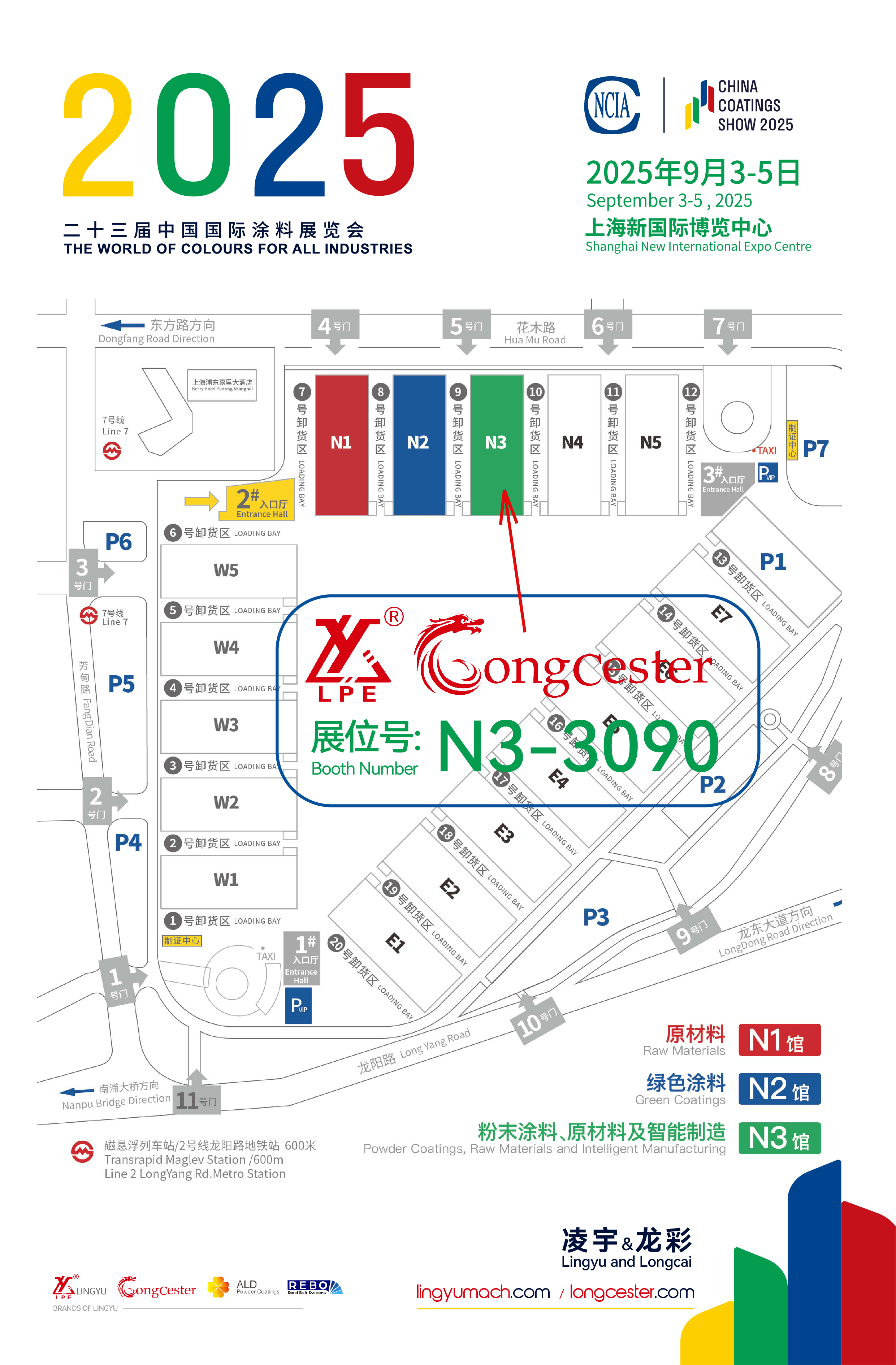 作為中國粉末涂料加工設(shè)備及原材料領(lǐng)域的代表性企業(yè),凌宇機(jī)械與龍彩新材料將亮相本屆展會,展位號N3-3090。