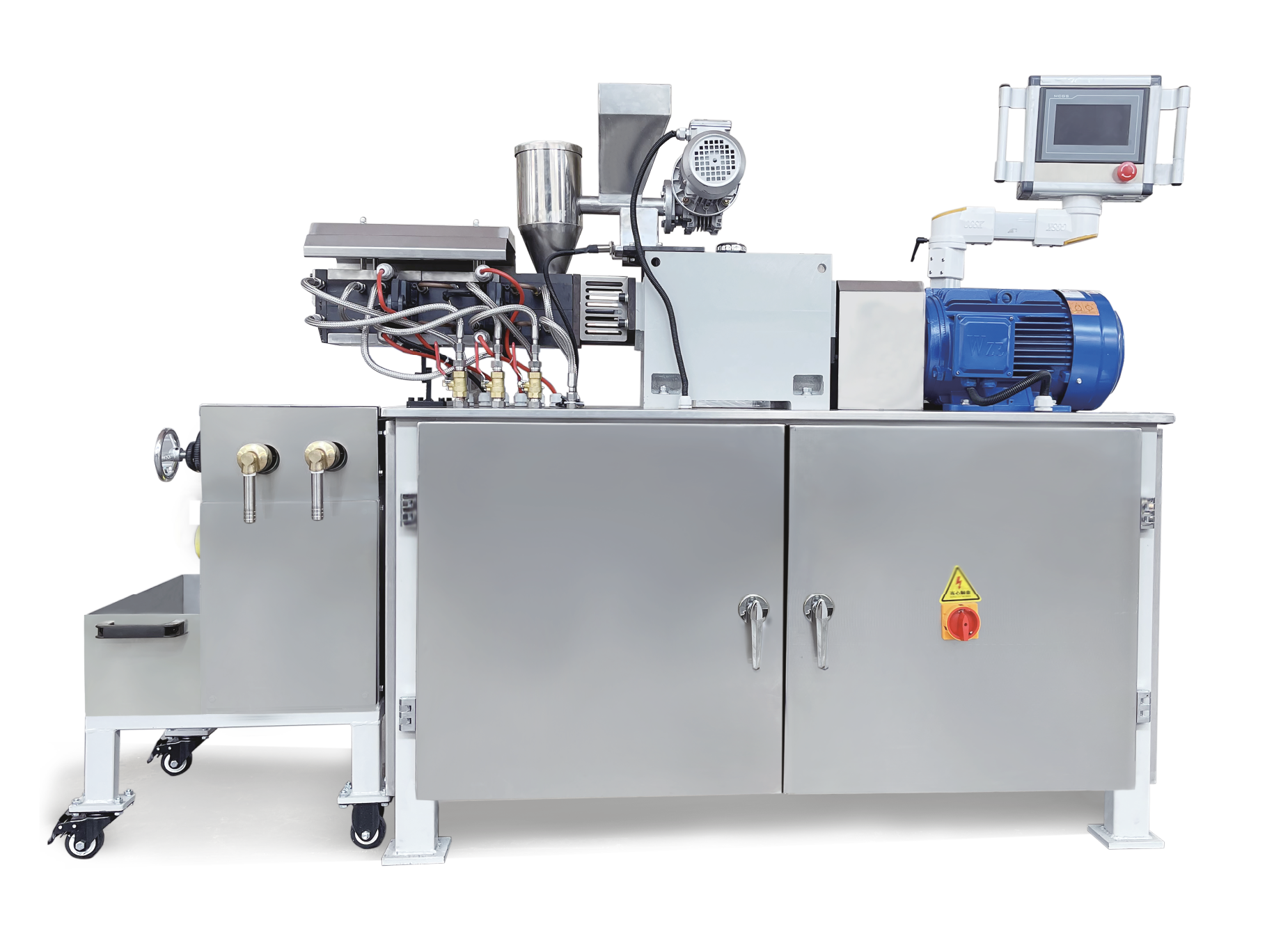 實驗室雙螺桿擠出機SLJ系列實驗室雙螺桿擠出機設計新穎,結(jié)構(gòu)緊湊合理,集擠出、壓片于一體,其混煉效果可與大機相媲美,是研制粉末涂料生產(chǎn)工藝、品種開發(fā)、校色的理想設備。原料在高速旋轉(zhuǎn)精密嚙合塊的作用下,進行充分的分散和分布混合。實驗室雙螺桿擠出機是粉末涂料生產(chǎn)的關(guān)鍵設備。