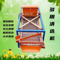 該精選篩為二層篩網,先經過進料口處風機吹風,直接吹走重量輕的雜葉或麥秸稈,上層篩的初次篩分再把大雜清理過,好的糧食(種子)直接落到下層篩網上,下層篩網會把糧食(種子)中的小雜.小石子.有缺陷的糧食(種子)直接漏掉,完好的糧食(種子)會從出料口篩分出來。該小型清糧機解決了揚場機的功能單一,不能有效去除石子.土塊的缺陷,更能為清理.凈選糧食(種子)帶來滿意的效果。該機有占地小,移動方便,便以維修,除塵除雜效率明顯,能耗低,使用簡便等優點。真可謂是中小型糧食清理凈選篩!