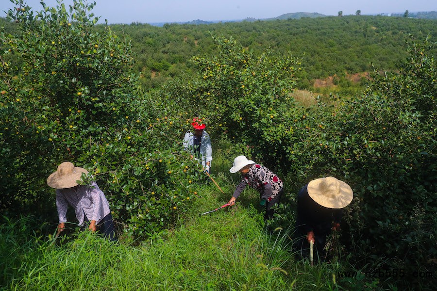 9月9日,河南省信陽市光山縣槐店鄉(xiāng)晏崗村司馬光萬畝油茶園基地內(nèi),村民正在查看油茶籽的長勢。