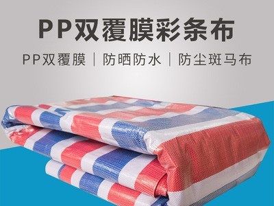 廠家供應PP雙覆膜全新料彩條布140g防曬防水建筑三色布防塵彩條布