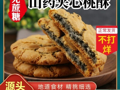 鐵棍山藥黑芝麻夾心桃酥山藥餅干核桃酥無蔗糖零食糕點心整箱批發