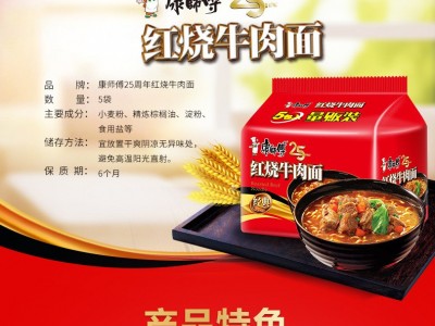康師傅經典袋5連包方便面泡面速食香辣紅燒酸菜牛肉面