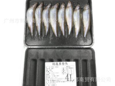 精選多春魚4L( 產(chǎn)地:佛山 長約12~13CM 約130~150克 8尾X30碟 )批發(fā)價:300元/盒;