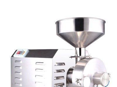 4、啟動電源,運轉1分鐘左右,將物料放進料斗,將調節器擰至適當位置,打開下料擋板,使物料緩慢地流進磨粉腔。擋板開小一點,以免進料太快,造成卡機或悶機。普通物料一般磨兩遍,一遍粗磨,二遍細磨。