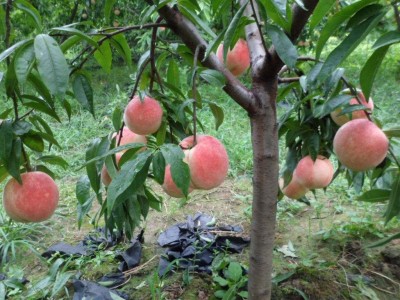 國慶桃,外觀美觀、果實碩大、色澤紅艷、著色均勻、桃味濃郁,成熟期在中秋、國慶前后,以核小肉嫩,甘甜青脆,果肉脆硬,很耐存成。