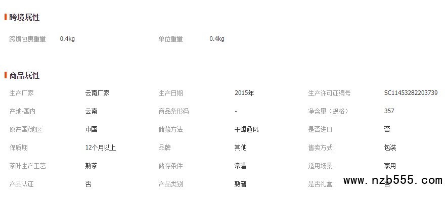 【產品規格】:357克/餅  42餅/件