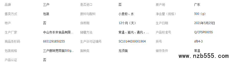 三戶原味寬條面500g寬