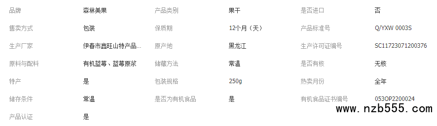 九鑫山珍森林美果有機(jī)藍(lán)莓果干250g無(wú)油減糖不臟手有嚼勁不齁膩 九鑫山珍有機(jī)藍(lán)莓干大顆粒獨(dú)立包裝