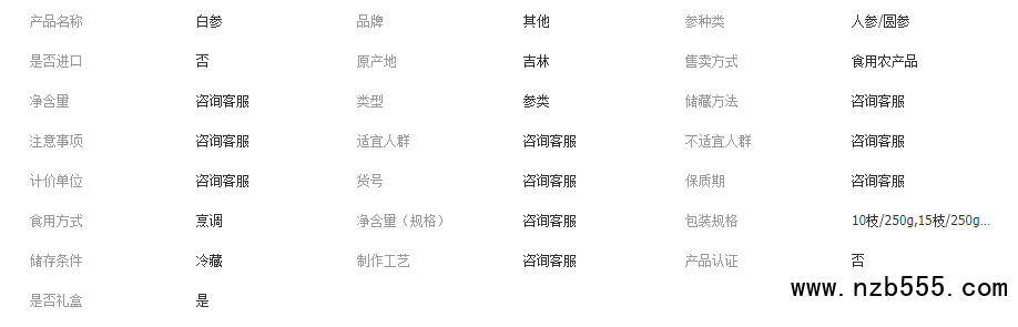 東北長白山干人參白參