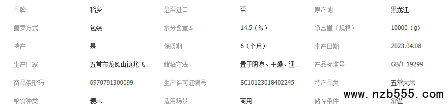 稻鄉 五常大米 優質產區 五常稻鄉稻花香 規格10kg 五常大米批發