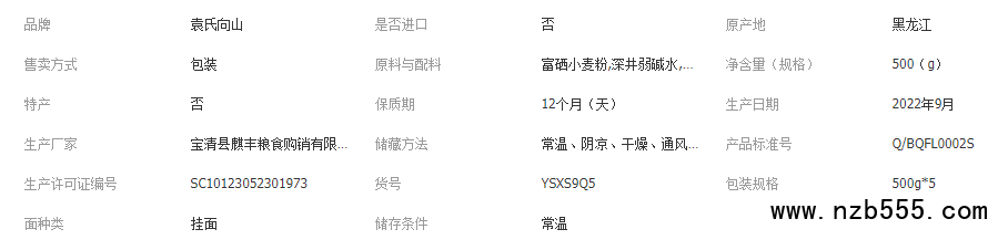 袁氏向山全麥富硒掛面