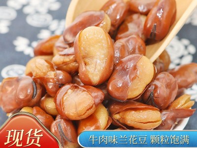廠家供應辦公小零食戶外露營牛肉味蘭花豆蠶豆20斤/箱批發五香